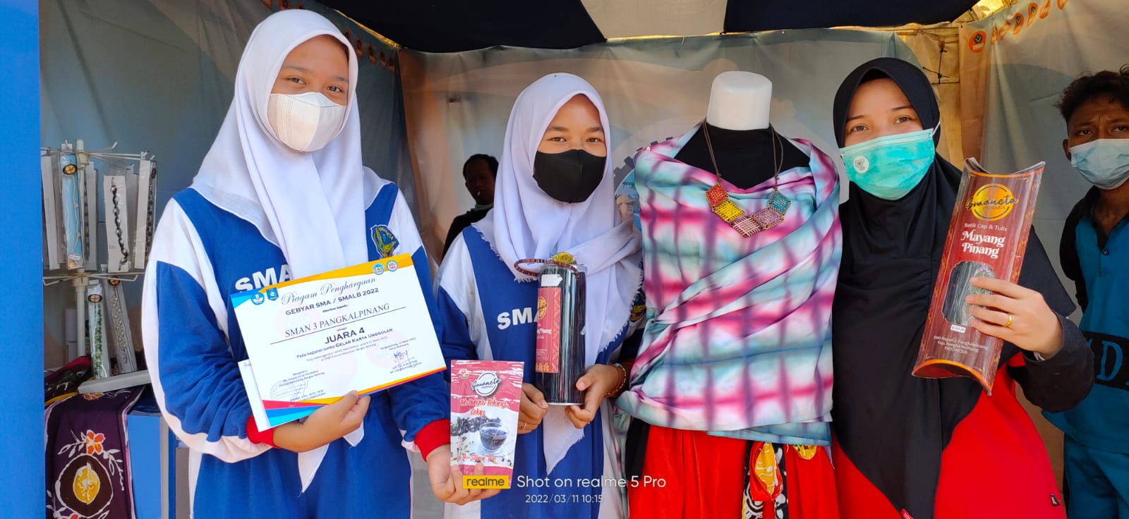 SMA Negeri 3 Pangkalpinang sebagai Salah Satu Peserta Kegiatan Membuka Stand yang menampilkan karya dan Produk hasil cipta Siswa dan Guru SMA Negeri 3 Pangkalpinang . diantaranya kain Batik, Produk dari Bunga Telang dan Beberapa Karya Seni Seperti Lukisan dan Seni Kriya.