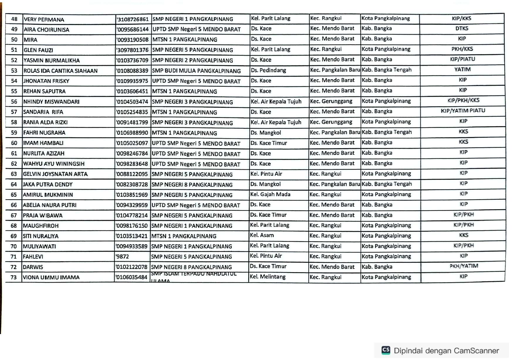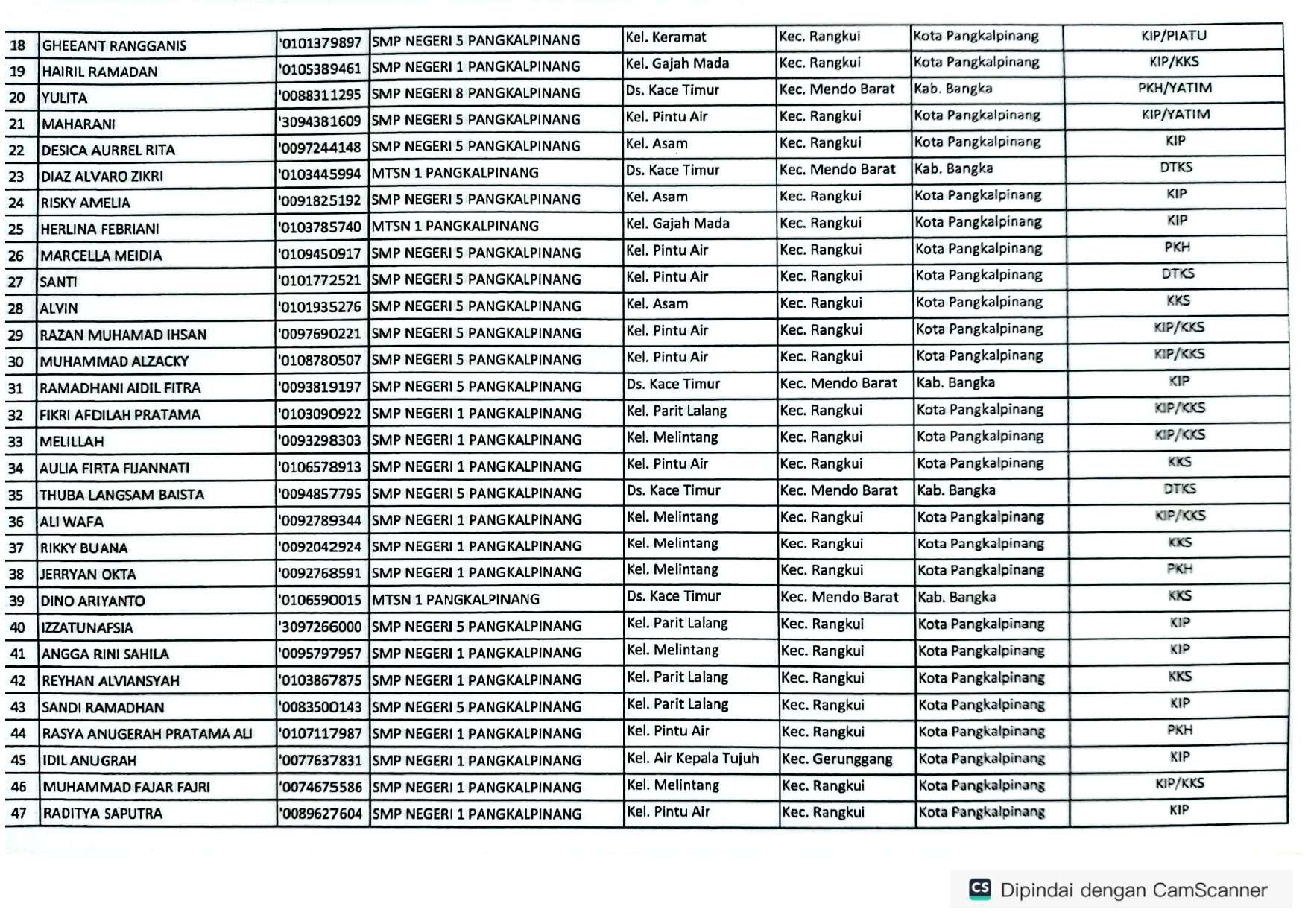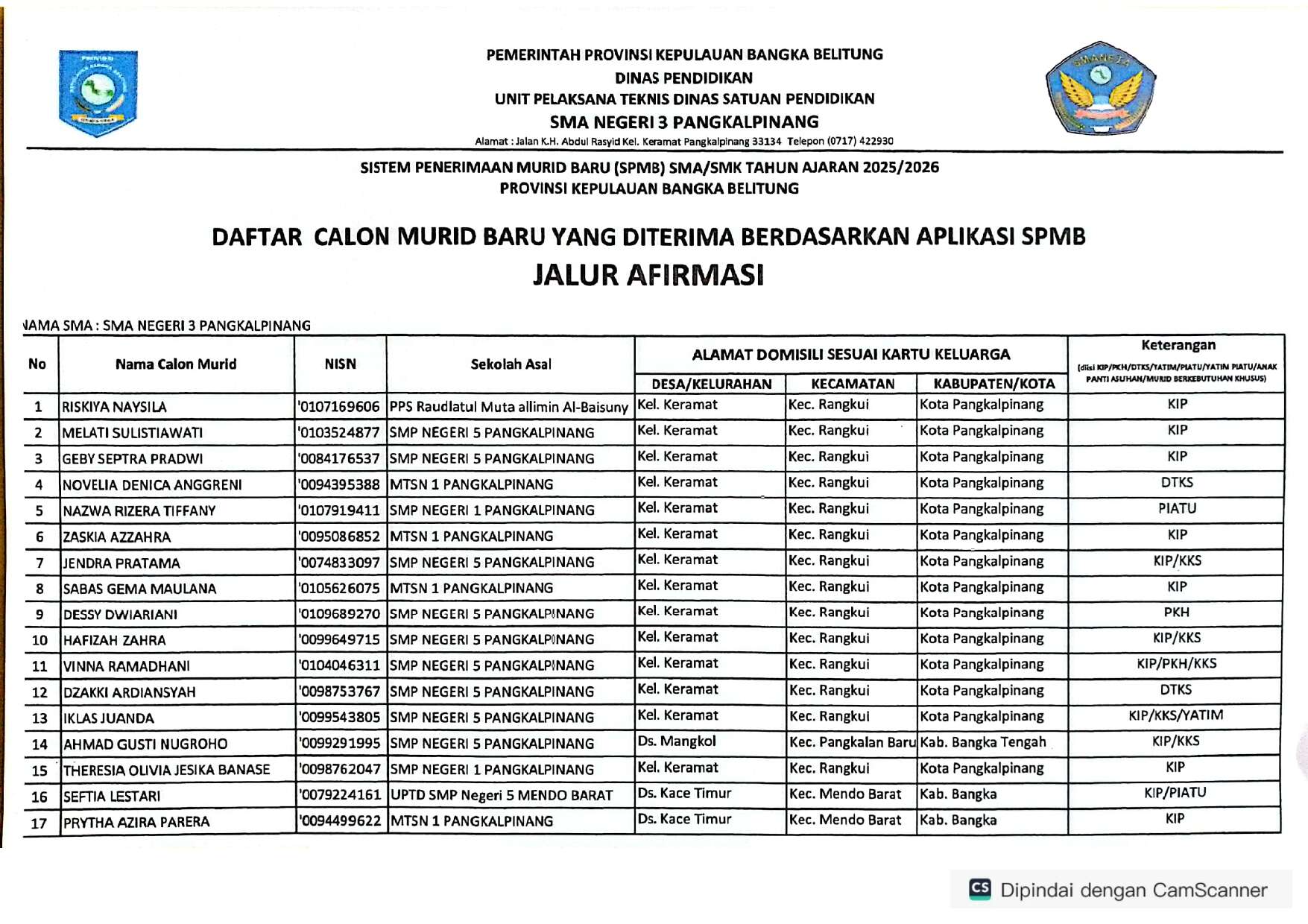 DAFTAR CALON MURID BARU YANG DITERIMA BERDASARKAN APLIKASI SPMB JALUR AFIRMASI